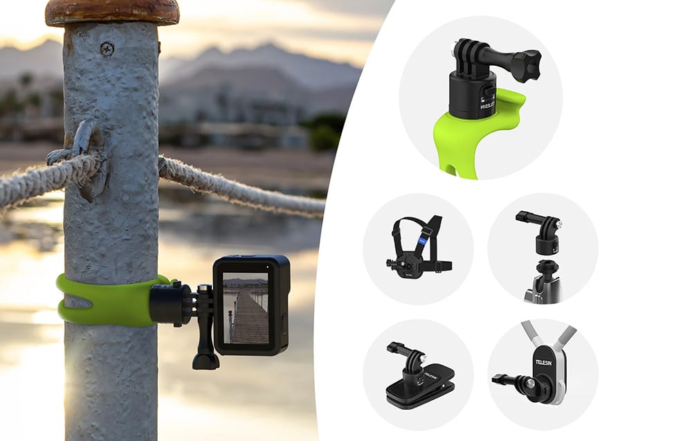 Dzięki możliwości obrotu o 360° w poziomie i 180° w pionie, mocowanie silikonowe Telesin oferuje szeroką gamę opcji ustawień. Pozwala to na kreatywne podejście do nagrywania i eksperymentowanie z różnymi kątami i perspektywami. Takie rozwiązanie zapewnia maksymalną kontrolę nad ujęciami, umożliwiając uchwycenie wyjątkowych momentów z dowolnej perspektywy.