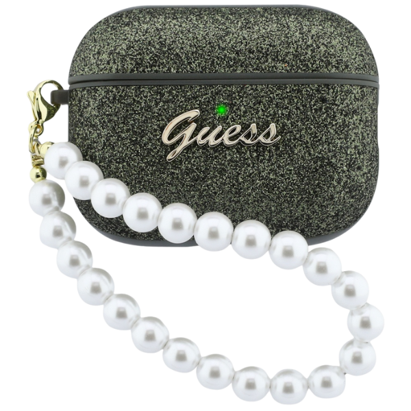 Etui Guess Glitter Pearl Strap do Apple AirPods Pro 3 khaki