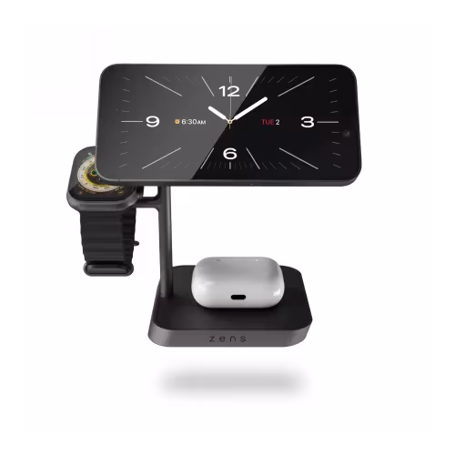 Zens Office Charger Pro 3 to najwyższej klasy stacja ładująca 3-w-1, która obsługuje nowy standard Qi2 z mocą do 25 W dla iPhone’a 17. Dzięki temu otrzymujesz pełne tempo ładowania bezprzewodowego, które dorównuje szybkością ładowaniu przewodowemu. Stacja jest przeznaczona do jednoczesnego zasilania iPhone’a, Apple Watch i słuchawek AirPods, a jej konstrukcja sprawia, że świetnie prezentuje się na biurku.