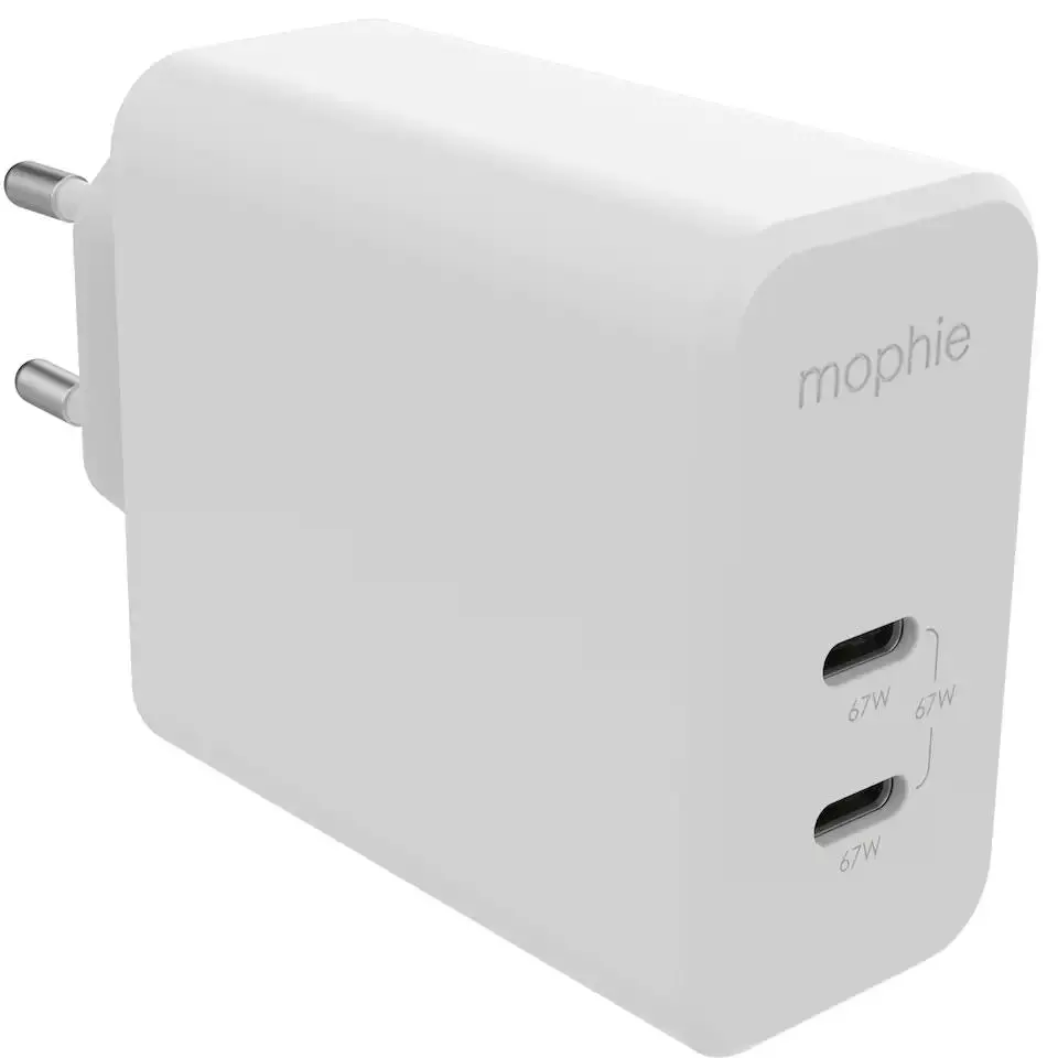 Mophie GaN Charger Dual 67W 2×USB-C (biała) | 67 W | 2× USB-C | GaN | USB-PD | 329,00 zł | Premium; jedna ładowarka do iPhone’a + MacBooka/iPada, kompaktowa i wydajna. |