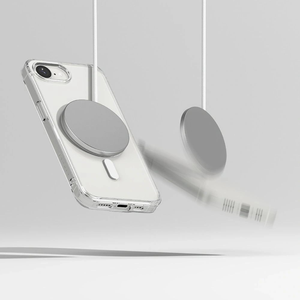 iPhone 17e to budżetowy iPhone z aluminiową ramką i szklanym tyłem. Wspiera MagSafe i ładowanie indukcyjne Qi2, więc etui z wbudowanym pierścieniem magnetycznym to must-have — bez niego tracisz wygodę ładowania bezprzewodowego i akcesoriów magnetycznych.