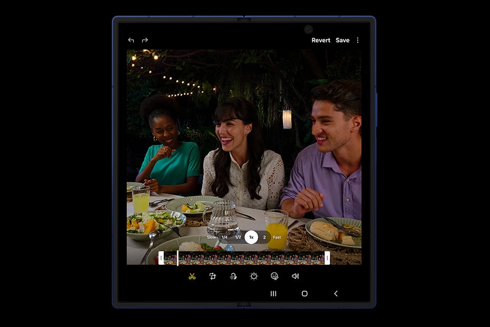 - Wewnętrzny: 8,0″ Dynamic AMOLED 2X (LTPO), 2184×1968 px, 120 Hz. Elastyczny panel wykonany z ultracienkiego szkła (UTG); ulepszono konstrukcję zawiasu i zminimalizowano zagięcie na środku ekranu w porównaniu do poprzednich generacji.