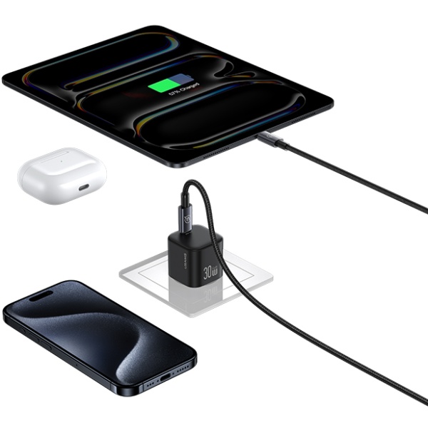 Ładowarka sieciowa USAMS CC262 to połączenie nowoczesnej technologii i minimalistycznej formy. Dzięki zastosowaniu chipu GaN (azotek galu), urządzenie oferuje wysoką moc ładowania 30W w wyjątkowo kompaktowej obudowie o wymiarach zaledwie 34x34x32 mm (bez wtyczki). Jest idealna do codziennego użytku zarówno w domu, jak i w podróży. Zintegrowany port USB-C obsługuje szeroki zakres napięć (5V⎓3A, 9V⎓3A, 12V⎓2.5A), co zapewnia zgodność z większością nowoczesnych smartfonów i tabletów. W zestawie znajduje się także kabel USB-C/USB-C o długości 1 metra, gotowy do pracy od razu po wyjęciu z opakowania.