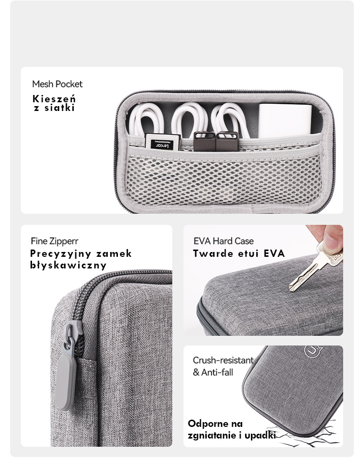 USAMS US-ZB263 ist eine handliche, leichte Tasche, die für den sicheren Transport von Powerbanks und kleinen Zubehörteilen entwickelt wurde. Die starre und gleichzeitig kompakte Konstruktion schützt das Gerät in der Tasche oder im Rucksack vor Kratzern und typischen Erschütterungen im täglichen Gebrauch.