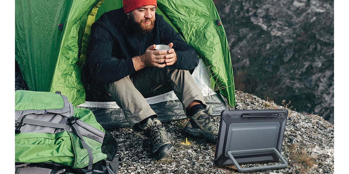 Tragen Sie Ihr Tablet ohne Bedenken nach außen. Das robuste Gehäuse hat eine Militärstandardfestigkeit (MIL-STD 810G-516.7), um das Tablet vor kleinen Stürzen und Stößen zu schützen, während Sie unterwegs sind.