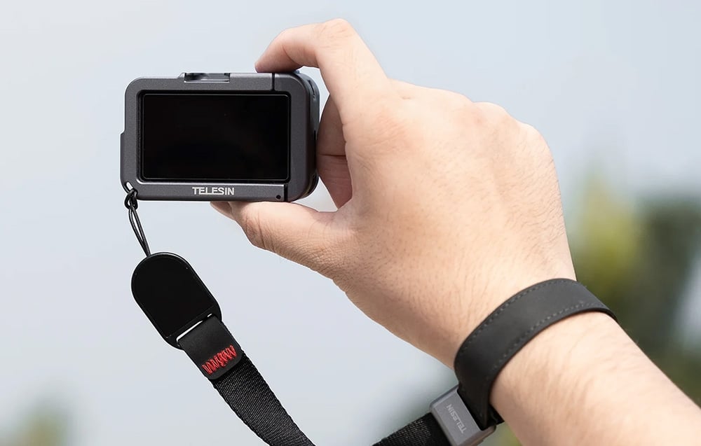 Für Nutzer, die im Gelände aktiv sind, wurde das Gehäuse mit einer originalen Öffnung für ein Handgelenkband ausgestattet. Diese praktische Lösung erhöht die Sicherheit bei der Nutzung und reduziert das Risiko, die Ausrüstung fallen zu lassen. Dank der einzigartigen Befestigung können Sie die Kamera bequem am Handgelenk tragen – genau das Richtige für aktive Content-Ersteller.