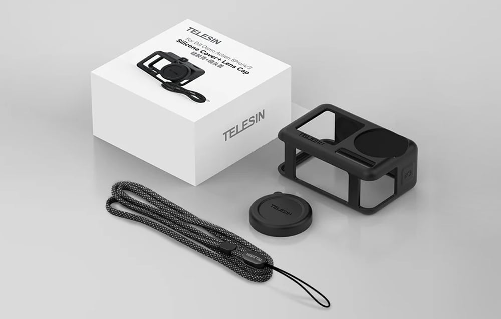 Telesin oferuje aż siedem funkcjonalnych cech, które czynią to etui wyjątkowym wyborem – dokładne dopasowanie, kompleksową ochronę przed ścieraniem i wstrząsami, osłonę obiektywu odporną na upadki i zarysowania, elastyczny silikon odporny na odkształcenia, antypoślizgową powierzchnię, bezpieczną smycz oraz możliwość wygodnego przechowywania. Do zestawu dołączono smycz zabezpieczającą oraz zewnętrzny uchwyt na nadgarstek lub torbę, który pozwala mieć kamerę zawsze pod ręką i zapobiega jej przypadkowemu zgubieniu.