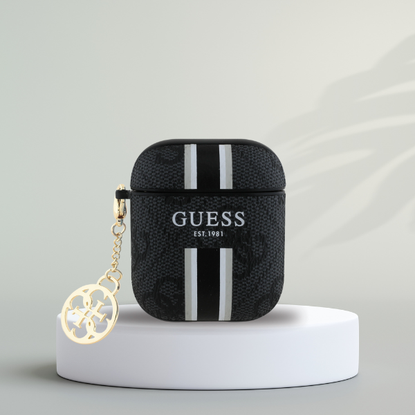 Guess 4G Bedruckte Streifen Charm Es handelt sich um eine exklusive Linie von Schutzhüllen, die sowohl außergewöhnliche Funktionalität als auch ein stilvolles, einzigartiges Design vereint. Diese Kollektion wurde für Personen entworfen, die nicht nur Wert auf die Sicherheit ihrer Kopfhörer legen, sondern auch auf ein elegantes Aussehen.