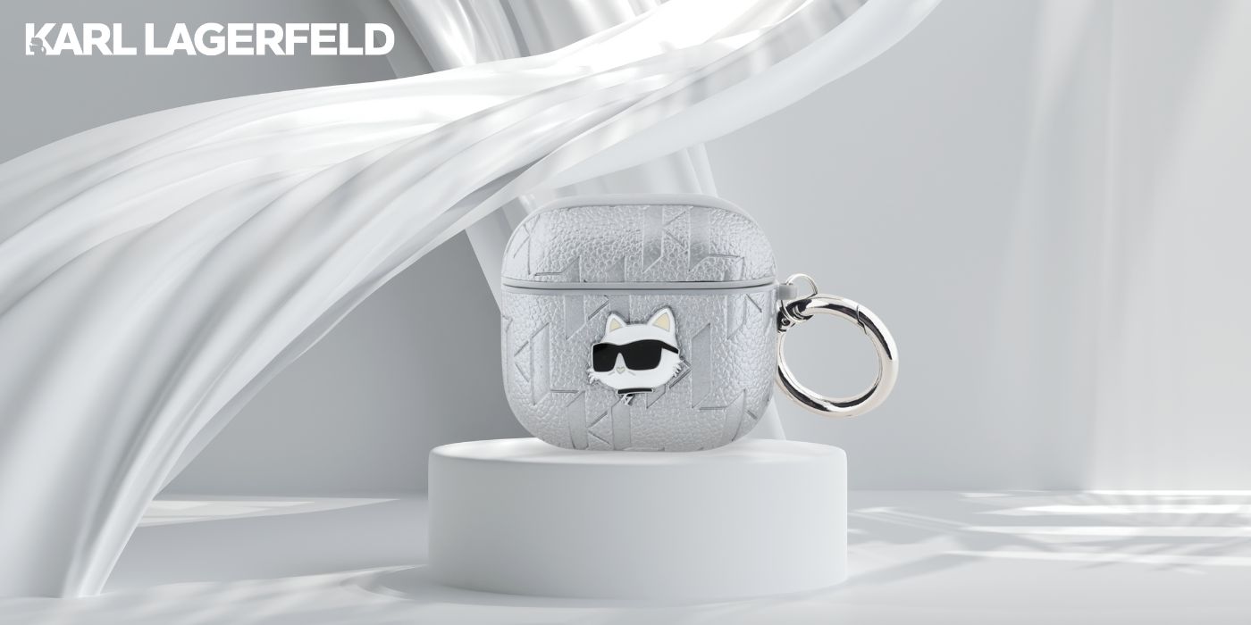 Karl Lagerfeld Monogram Choupette Kopf Apple AirPods 4 Silber