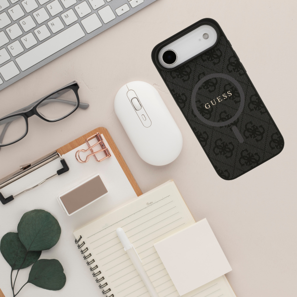 Jede Hülle wurde mit einem feinen, umweltfreundlichen Leder verziert, das zusätzlich mit einem hochwertigen 4G-Druck geschmückt ist, der einen klassischen Designvorschlag der Marke darstellt. Guess. Material von höchster Qualität zeichnet sich durch hohe Widerstandsfähigkeit gegen Beschädigungen und Kratzer aus, wodurch es über einen längeren Zeitraum sein makelloses Aussehen behält. Großes Markenlogo Guess Zentral platziert auf der Rückseite des Covers unterstreicht es die Elitärheit der Kollektion, stellt eine schöne Verzierung dar und bestätigt gleichzeitig die exzellente Qualität sowie die Authentizität des Covers.