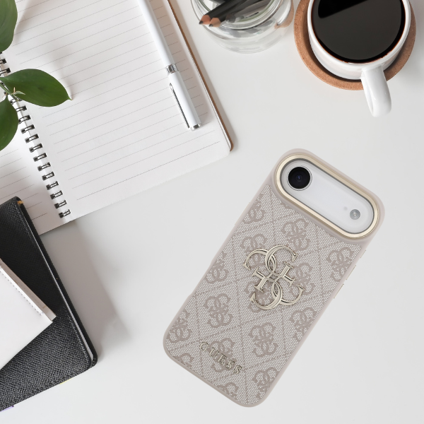 Etui wykonane z wysokiej klasy ekoskóry o teksturalnej powierzchni, której dopełnieniem jest duży legendarny symbol 4G oraz metalowe logo Guess. Dodatkowo całość zdobi elegancki, subtelny wzór monogramu 4G powtarzający się na całej powierzchni etui, co nadaje mu wyjątkowego i rozpoznawalnego charakteru.