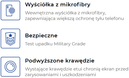 | Produkteigenschaften | Erhöhte Ränder rund um den Bildschirm Bildschirmschutz Technologie EasyClick™ Buttons Geräteschutz Kompatibel mit den Gläsern und Folien von 3mk Protection Kompatibel mit kabellosen Ladegeräten Gesundheitlich unbedenklich (PZH-Zertifikat) Umweltfreundlich (RoHS-Studienbericht) |