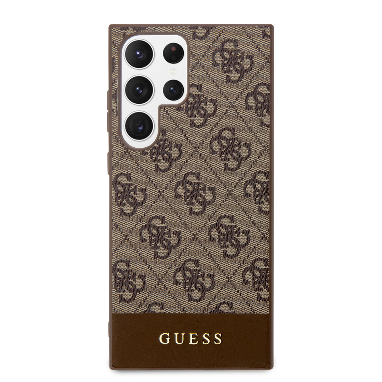 Schickes Etui Guess Die 4G Stripe Kollektion ist nicht nur ein praktisches Schutzelement für Ihr Smartphone, sondern auch ein Ausdruck exzellenten Stils und Geschmacks. Sein einzigartiges Design, basierend auf dem erkennbaren 4G-Muster, das mit dem goldenen GUESS-Logo versehen ist, zieht die Aufmerksamkeit auf sich und verleiht Eleganz.