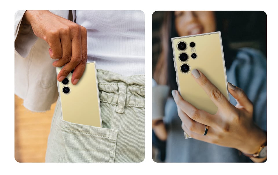 Betonen Sie die Schönheit Ihres Galaxy S24 Smartphones mit der schlanken und eleganten Clear Case. Dieses ideale Zubehör sorgt dafür, dass Ihr Gerät länger wie neu aussieht und gleichzeitig vor versehentlichen Stößen und Kratzern geschützt ist.
