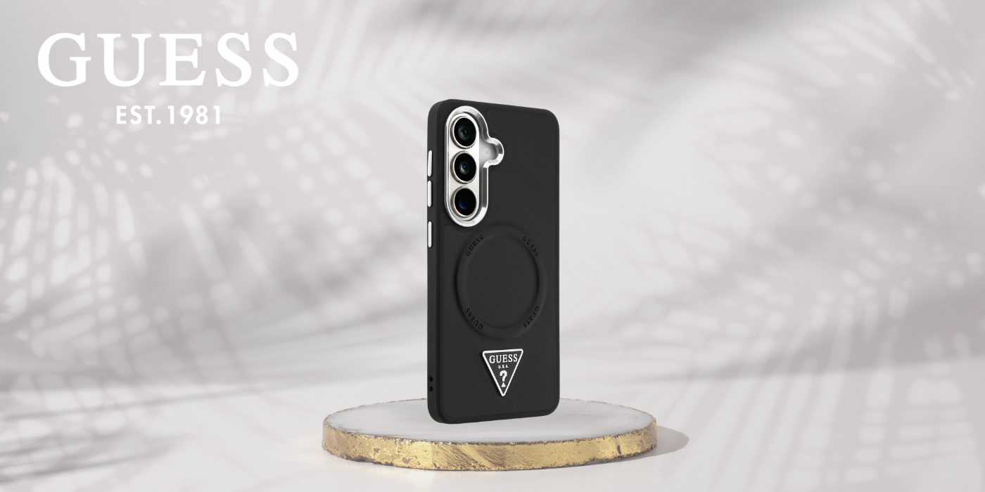 Guess Prägung Ring Dreieckslogo MagSafe Samsung Galaxy S26 schwarz