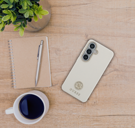 Guess Strass Rundes Logo MagSafe Samsung Galaxy S26 beige
