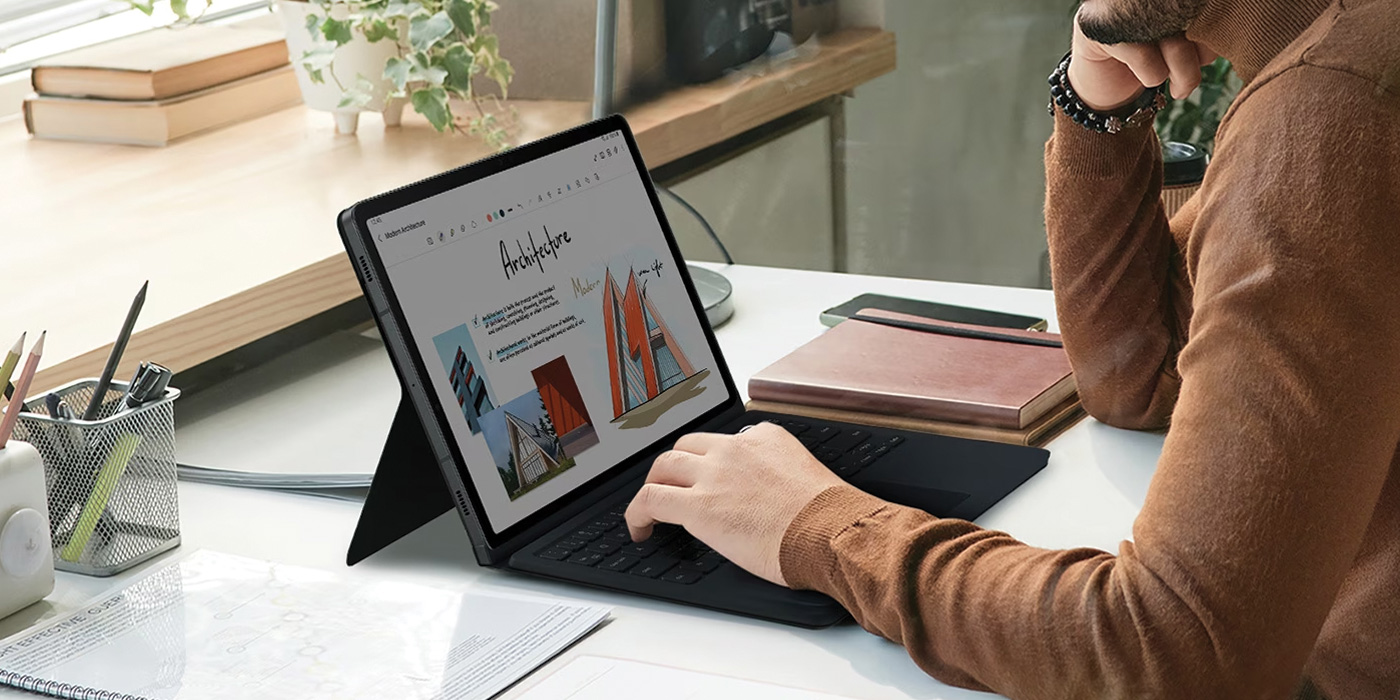 Erledigen Sie Aufgaben mit unglaublicher Leichtigkeit mit der Book Cover Keyboard-Hülle. Die Tasten in voller Größe, die Funktionstasten und das Trackpad in Kombination mit dem DeX-Modus bieten ein PC-ähnliches Erlebnis mit nur einer Berührung.
