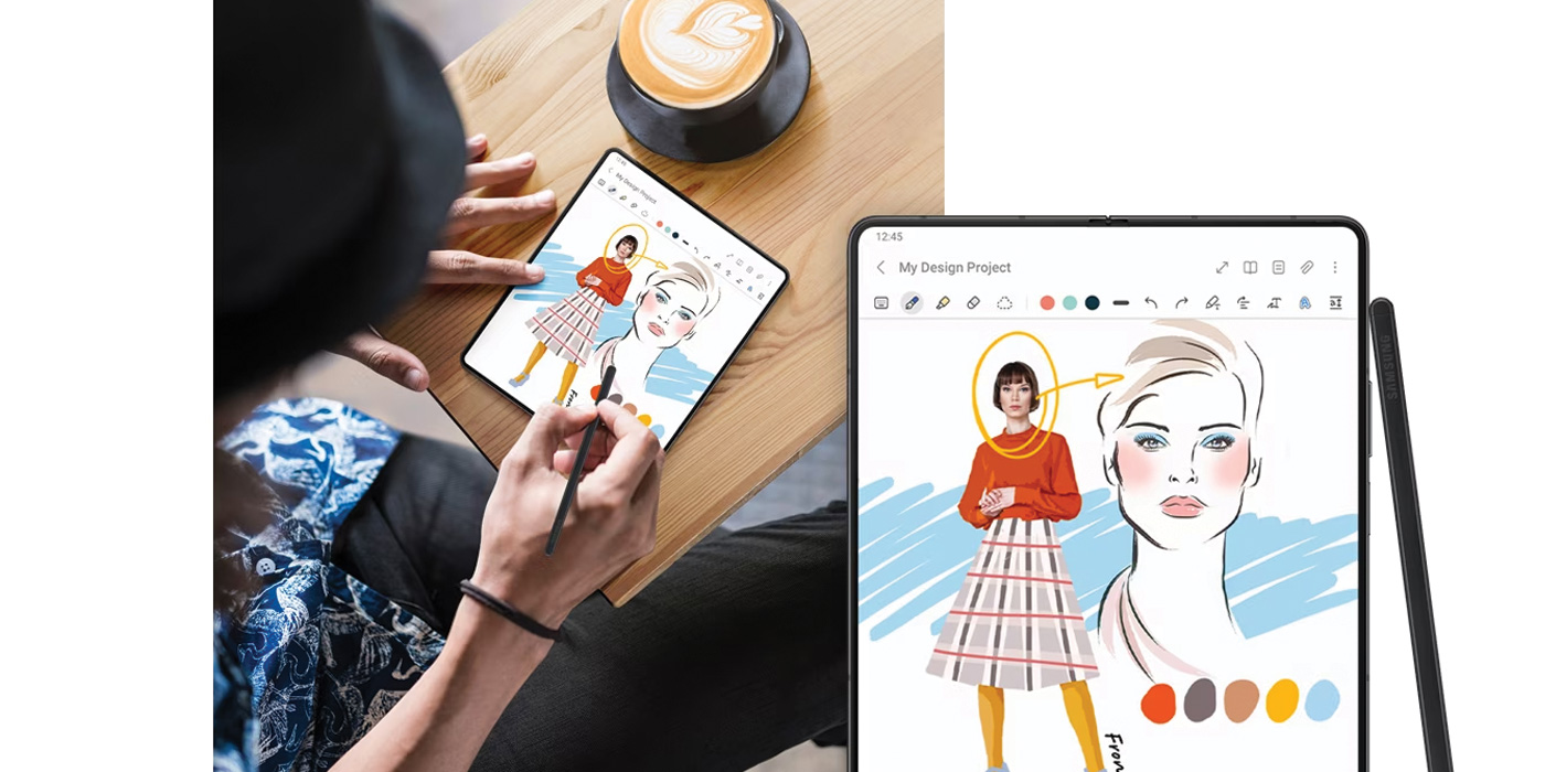 Nutzen Sie das volle Potenzial des Galaxy Z Fold5-Displays mit dem S Pen Stylus. Mit seiner dünnen Spitze bietet er bis zu 4096 Druckstufen, sodass Sie so natürlich und präzise schreiben und zeichnen können, wie Sie es mit einem herkömmlichen Stift oder Stift und Papier tun würden.