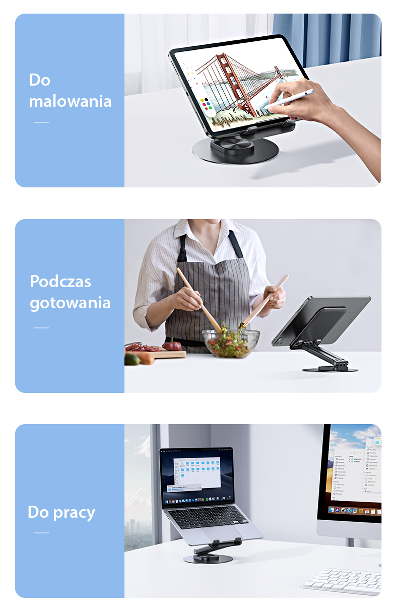 Dieser Ständer eignet sich in vielen Situationen – beim Malen, Kochen oder Arbeiten. Dank der verstellbaren Höhe und Winkel ermöglicht er eine bequeme Positionierung des Geräts, egal was du tust. Es ist eine praktische Lösung, die die Nutzung deines Handys oder Tablets jederzeit erleichtert.