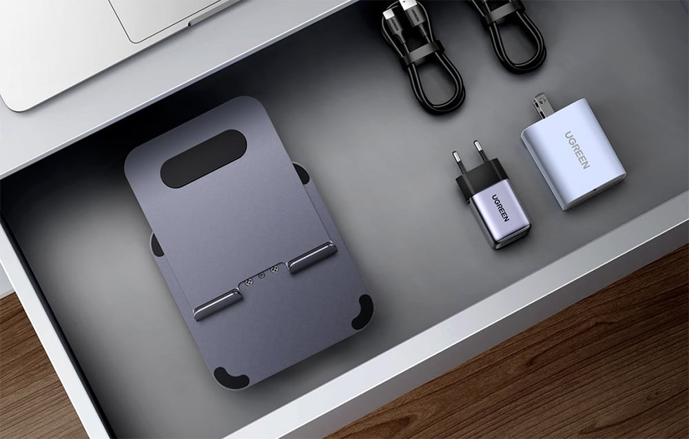 Die Metallkonstruktion des UGREEN LP894 Ständers gewährleistet Stabilität und Langlebigkeit. Die maximale Belastung von bis zu 1000 g ermöglicht eine sichere Nutzung auch mit größeren Tablets. Die Halterungen mit Silikonbeschichtung schützen das Gerät vor Kratzern und Verrutschen.