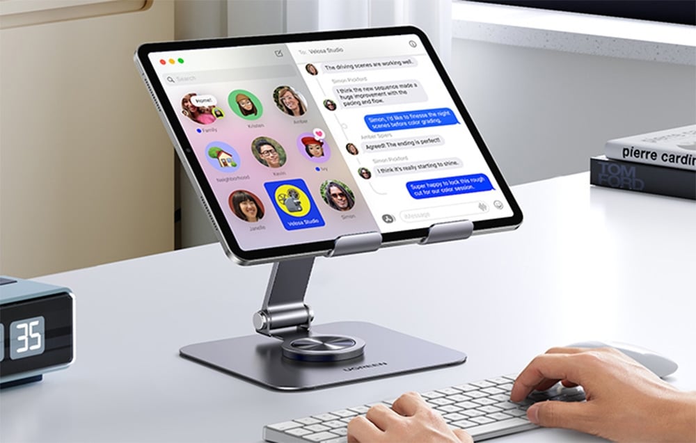Der drehbare Ständer UGREEN LP894 bietet Komfort bei der Nutzung von Tablets oder Smartphones in jeder Situation. Er besteht aus hochwertigem Metall, das Stabilität und sicheren Halt für Geräte mit einem Gewicht von bis zu 1 kg garantiert. Die Kompatibilität mit Geräten mit einer Diagonale von 4,7 bis 13 Zoll macht ihn ideal für iPads, Galaxy Tabs, Surface Pros sowie Smartphones wie das iPhone 16 Pro Max oder Samsung Galaxy S24 Ultra.