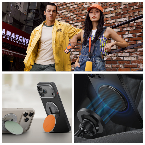 Der Halter bietet einen vollen Drehbereich. 360°, was einen nahtlosen Wechsel der Ausrichtung zwischen dem Hoch- und Querformat ermöglicht. Du kannst frei den Neigungswinkel anpassen Geräte zum Durchsuchen von Inhalten, Führen von Videoanrufen, Fotografieren oder Anschauen von Filmen. Kompatibilität mit magnetischen Auto-Halterungen und Montagebasen von UNIQ.Velo, Trellix, FlixaGrivix ist sowohl zu Hause als auch unterwegs praktisch.