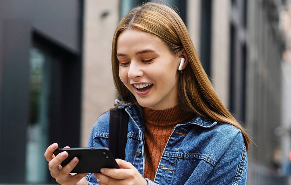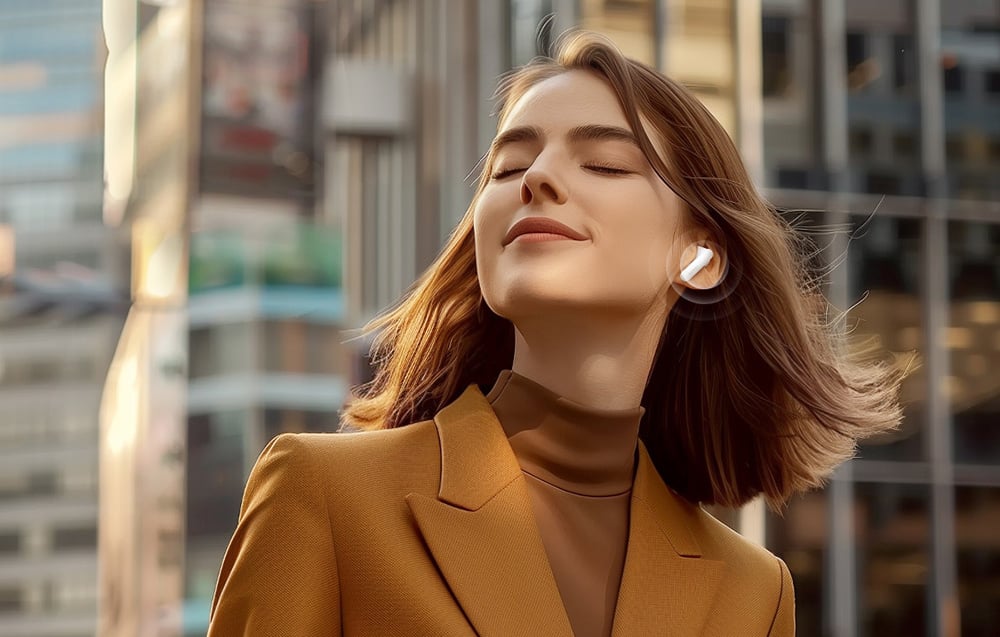 Die Technologie der adaptiven aktiven Geräuschunterdrückung (ANC) mit zwei Modi — General und Gentle — passt sich automatisch an die Umgebung an und beseitigt unerwünschte Geräusche. So kannst du deine Lieblingsmusik selbst in den lautesten Umgebungen genießen. Die Kopfhörer bewältigen mühelos die Geräusche der Straße, das Rauschen eines Büros oder den Lärm der öffentlichen Verkehrsmittel – sie schenken dir Ruhe und ein vollständiges Eintauchen in den Klang. Darüber hinaus stoppt die Musik automatisch, wenn du einen Kopfhörer herausnimmst, und setzt fort, wenn du ihn wieder einsetzt.