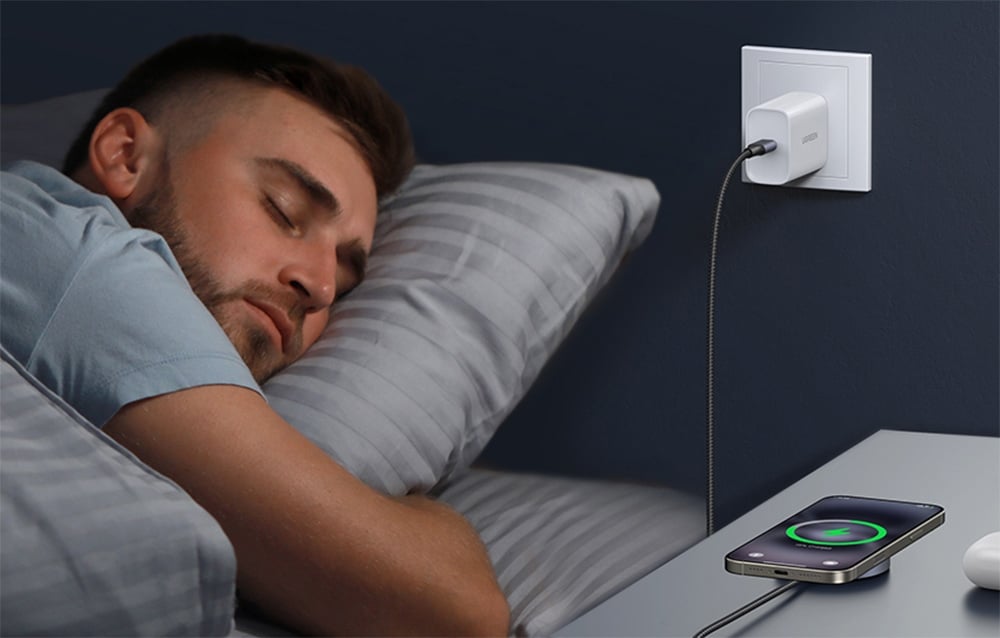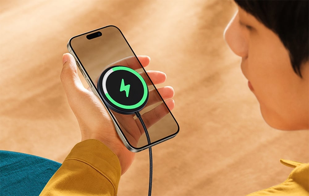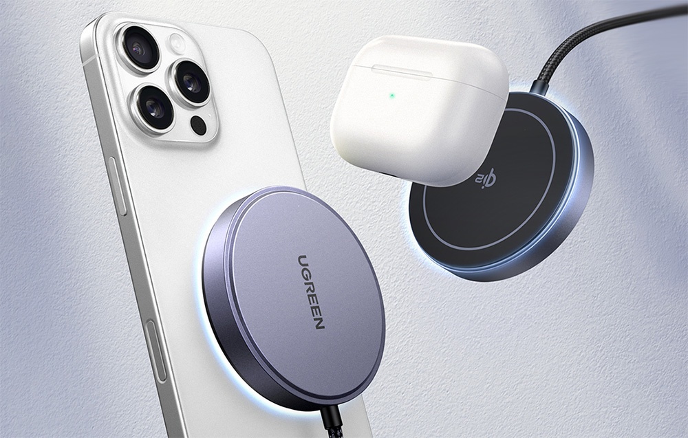 Das Modell UGREEN W703 funktioniert mit iPhones der Serien 12, 13, 14, 15 und 16 sowie mit AirPods Pro 2, AirPods Pro und der 2. und 3. Generation (mit einem Gehäuse für kabelloses Laden). Sie können das Telefon auch in einer magnetischen Hülle aufladen, ohne es abnehmen zu müssen.