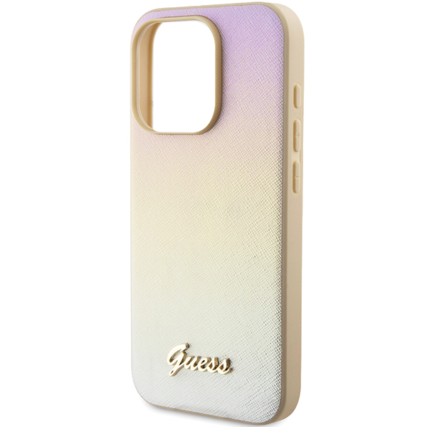 Case Guess GUHCP15XPSAIRSD Apple iPhone 15 Pro Max Hartschale Saffiano Iridescent Script gold