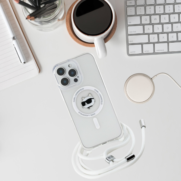 Karl Lagerfeld KLHMP16LHCCHNT Apple iPhone 16 Pro Hardcase IML Choupette Kopf & Cord Magsafe transparent