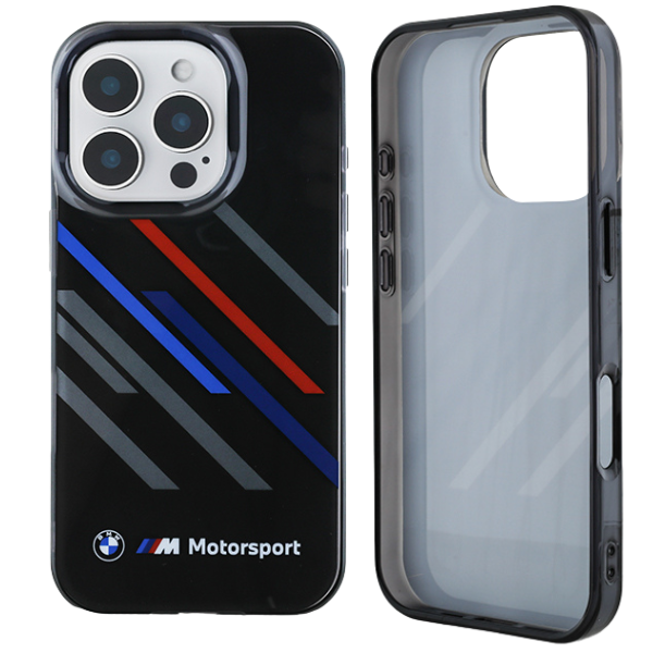 BMW BMHCP16L23HTRAK Apple iPhone 16 Pro Hardcase Motorsport IML Zufällige Streifen schwarz