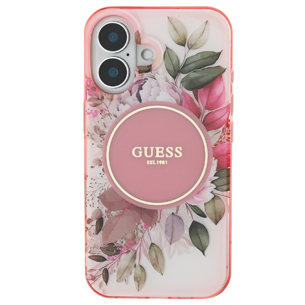 Guess GUHMP16SHFWBDCEP Apple iPhone 16 Hardcase IML Blume & Tonal Kreis MagSafe pink