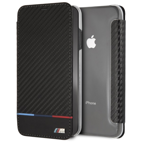 Exklusives BMW Etui aus der M Collection. Bookcase-Etui aus einer Kombination von thermoplastischem Polyurethan und synthetischem Carbon.