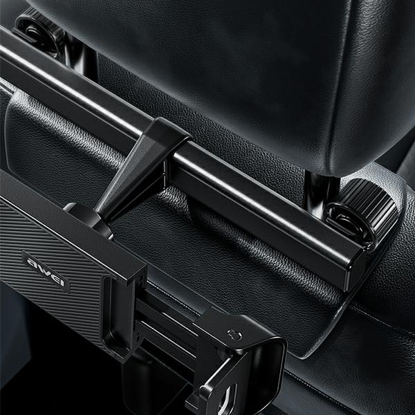 Awei Äußerst stabile Kopfstützenhalterung für Autositze X40. Kompatibel mit Handys und Tablets (von 45mm bis 180mm) Der Halter ist mit einem voll einstellbaren Kopf ausgestattet, so dass Sie Ihr Gerät nach Ihren Bedürfnissen positionieren können. Hergestellt aus hochwertigen Materialien, langlebige Aluminiumlegierung kombiniert mit ABS und Silikon