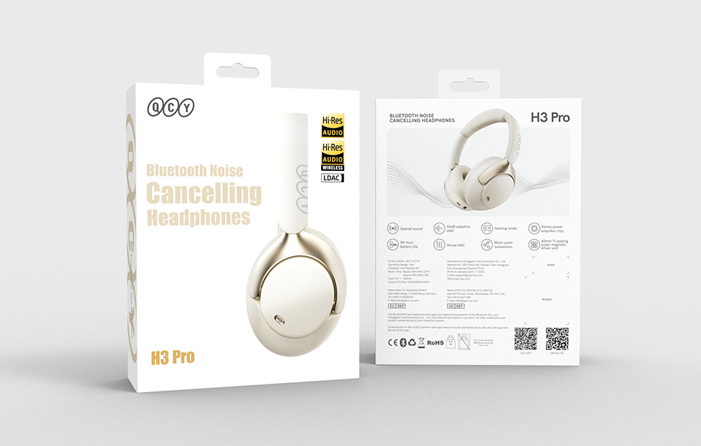 Kopfhörer QCY H3 Pro sind Hi-Res Audio und Hi-Res Audio Wireless zertifiziert und unterstützen den LDAC-Codec. Die leistungsstarken 40-mm-Treiber mit Titanmembran sorgen für einen klaren, räumlichen Klang mit außergewöhnlicher Tiefe und Detailreichtum. Der fortschrittliche 360°-Surround-Sound-Algorithmus ermöglicht es, in einen dreidimensionalen Klang einzutauchen, der sowohl ideal zum Musikhören als auch zum Filmeschauen ist.