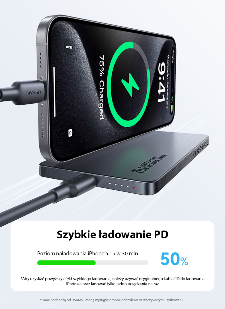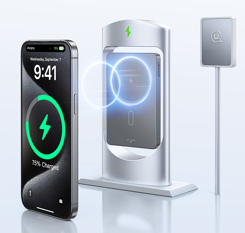 USAMS US-CD231 Powerbank mit kabellosem Laden 5000mAh 20W PD Schnellladung Titan