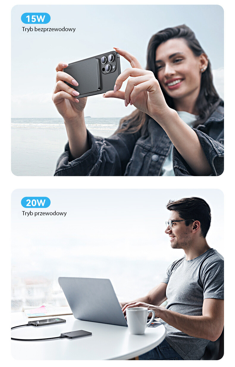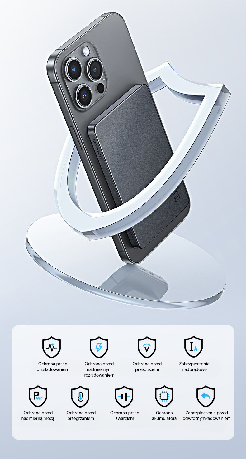 Die Powerbank bietet Komfort beim Laden dank der Funktion des drahtlosen magnetischen Ladens – ein einfacher Touch reicht aus, um das Gerät schnell und ohne lästige Kabel aufzuladen. Es ist die ideale Lösung für Menschen, die schnelles und bequemes Laden in jeder Situation schätzen.