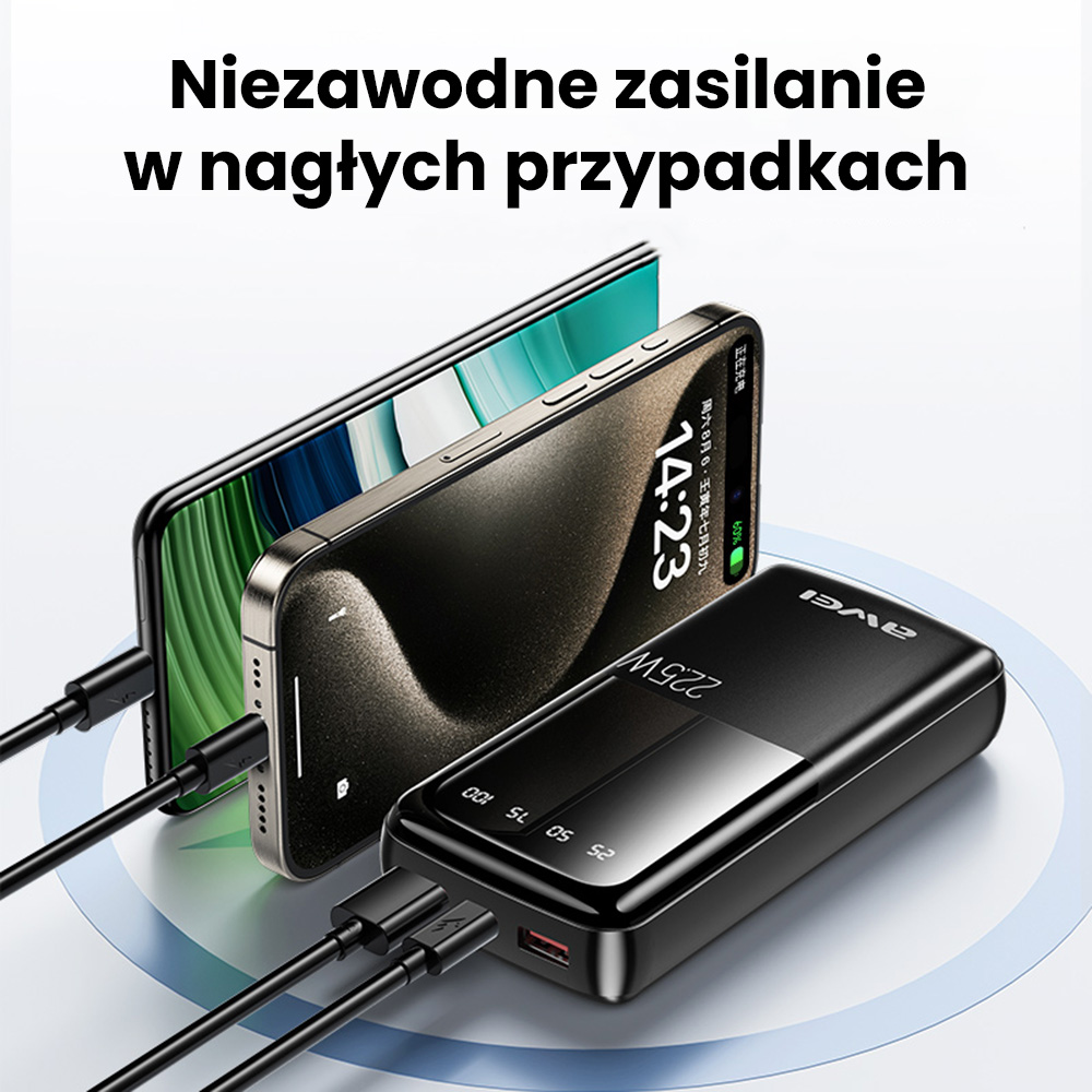 Die Powerbank AWEI P13K bietet schnelles Laden sowohl für Geräte mit iOS- als auch mit Android-Systemen. Das bedeutet, dass unabhängig davon, welches Smartphone Sie verwenden, die AWEI P13K eine effiziente und schnelle Energiezufuhr gewährleisten wird. Dank der Kompatibilität mit einer breiten Palette von Geräten können Sie sicher sein, dass Ihr iPhone oder Ihr Android-Smartphone immer bereit ist, wenn Sie es brauchen. Ideal für den täglichen Gebrauch und in Notfällen.