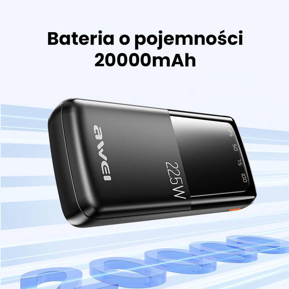 Powerbank AWEI P13K 20000mAh 22.5W Digitaldisplay schwarz