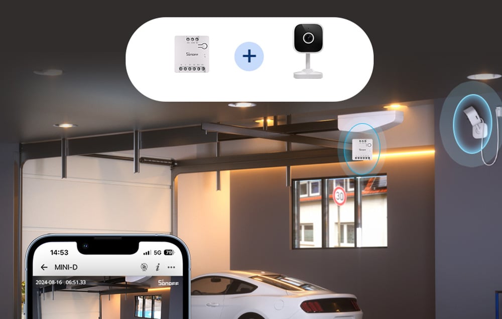 Eine der Hauptanwendungen des MINI-D ist die Fernsteuerung von Garagentoren. Nach der Integration in die Smart Home-App können Sie das Tor von überall aus öffnen und schließen, was Ihnen Komfort und Sicherheit bietet. Die Verbindung des Schalters mit einer Überwachungskamera ermöglicht es, den Zustand des Tores in Echtzeit zu überprüfen, wodurch das Risiko minimiert wird, es offen zu lassen.