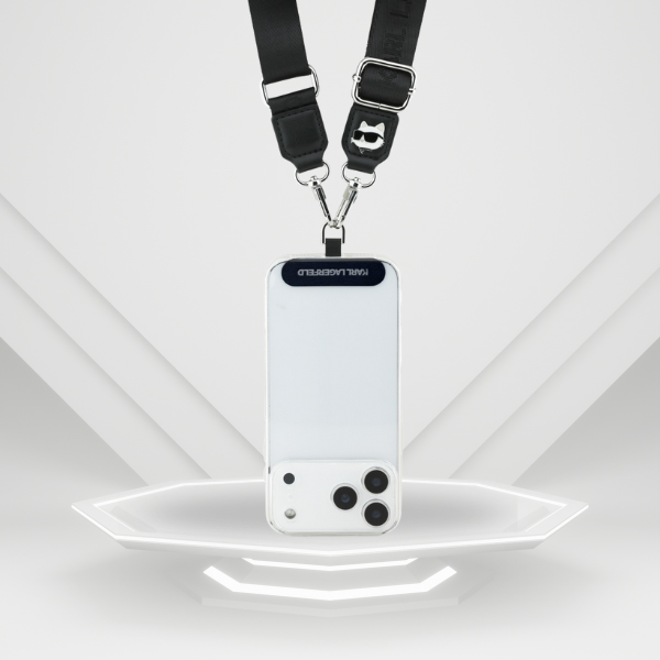 Leine Karl Lagerfeld Es ist ein Zubehör, das verbindet. Praktikabilität z modischem Design. Dank der Crossbody-Konstruktion kann sie bequem um den Hals oder über die Schulter getragen werden, was sie immer griffbereit macht.