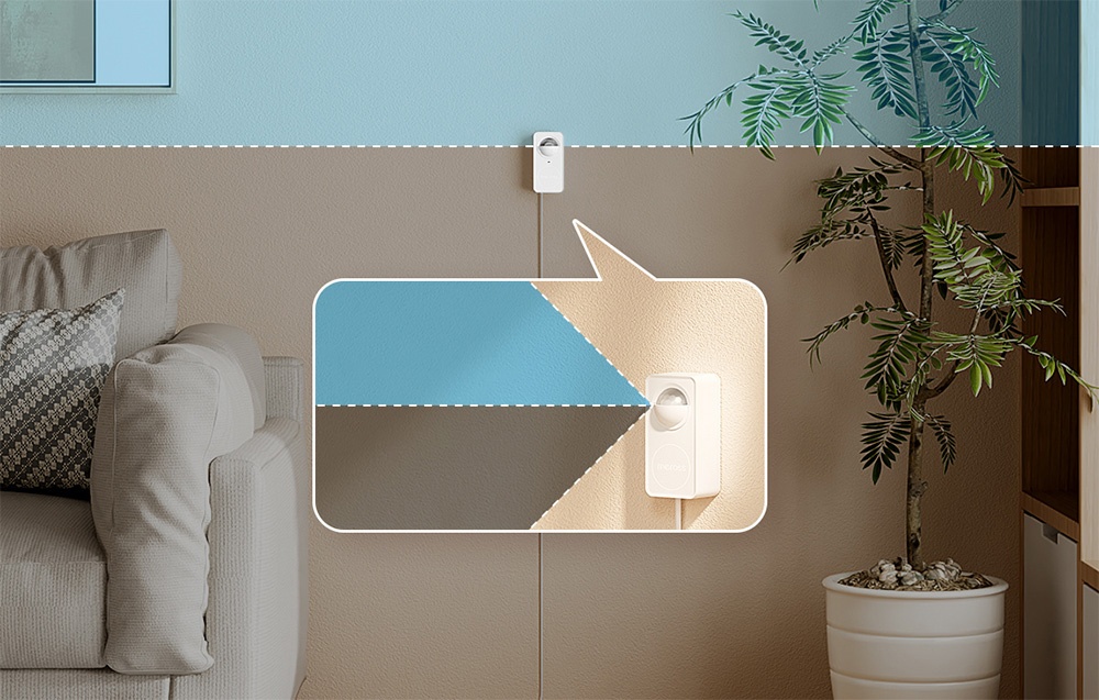 Sensor Meross Es kombiniert die Bewegungserkennung und Anwesenheitserkennung durch die Verbindung von PIR-Technologie und Millimeterwellenradar. Dadurch erkennt es sowohl Bewegung als auch Anwesenheit ohne Bewegung effektiv, was das Risiko von Fehlalarmen, die z.B. durch Staubsauger, Wind oder Schatten verursacht werden, minimiert. Der integrierte Lichtsensor erhöht zusätzlich die Möglichkeiten der Lichtautomatisierung, indem er sich an die Bedingungen im Raum anpasst.