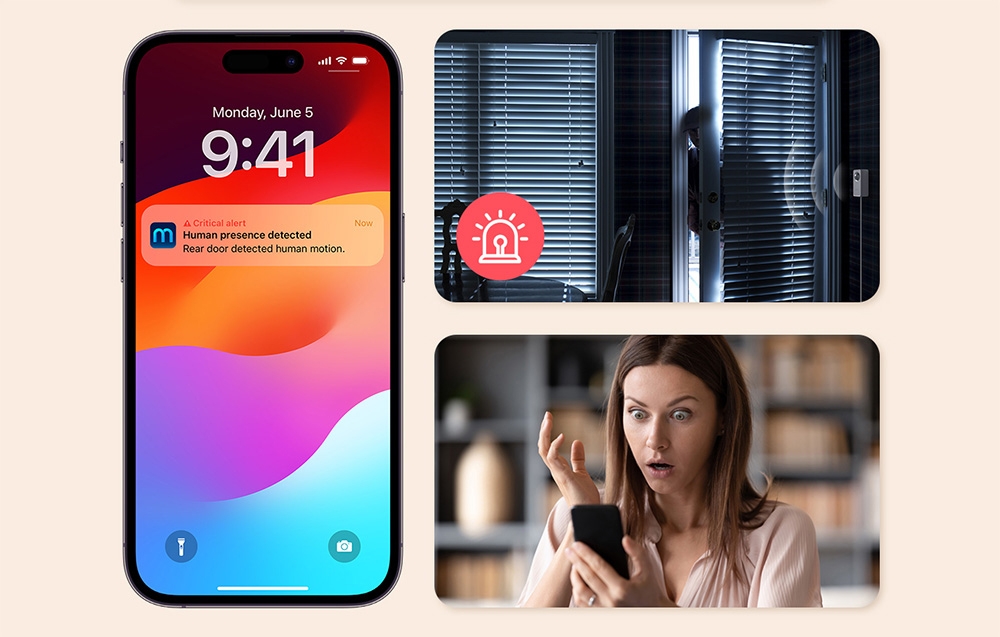 Im Gegensatz zu Kameras ist der Sensor Meross Es zeichnet kein Bild auf und sammelt keine Umgebungsdaten, was volle Privatsphäre garantiert. Durch die Nutzung der Radartechnologie ist es in der Lage, sogar subtile Bewegungen zu erkennen, ohne Effekte wie „Ghosting“ oder andere Fehlalarme. Darüber hinaus kann der Sensor bei Ihrer Abwesenheit einen Alarm auslösen und eine Benachrichtigung an Ihr Telefon senden, falls ein Einbruch stattfindet. So sind Sie immer auf dem neuesten Stand.