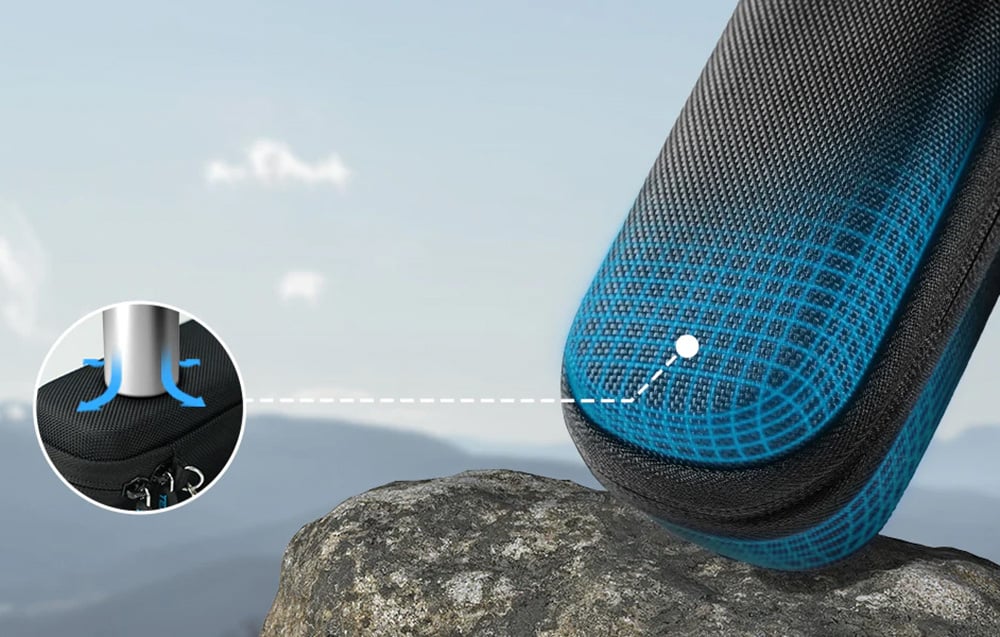Das Etui Telesin zeichnet sich durch seine Robustheit aus, dank des Einsatzes eines hochdichten Materials, das das Gerät effektiv vor mechanischen Schäden schützt. Die erhöhte Haltbarkeit und Stoßfestigkeit sorgen dafür, dass das Etui die Kamera DJI Osmo Pocket 3 selbst unter den anspruchsvollsten Bedingungen hervorragend sichert. Das in der Konstruktion verwendete Kompressionsmaterial verstärkt zusätzlich den Schutz vor Stürzen und minimiert das Risiko von Schäden.