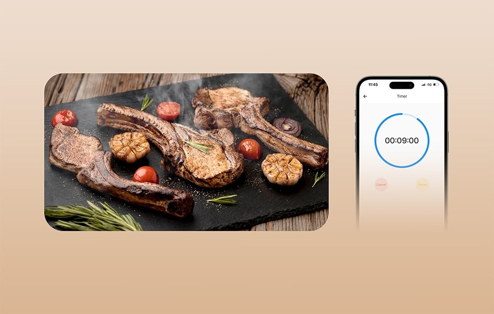 Nach dem Grillen kannst du einen Timer einstellen, der dich daran erinnert, wann das Fleisch ruhen sollte, was entscheidend für die Saftigkeit und den Geschmack ist. Wenn die Zeit abgelaufen ist, wird das Gerät dich benachrichtigen, dass das Gericht bereit zum Servieren ist.