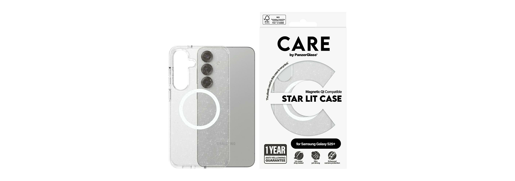 CARE von PanzerGlass Flagship Urban Combat StarLight Weiß QI Samsung Galaxy S25+ Plus klar
