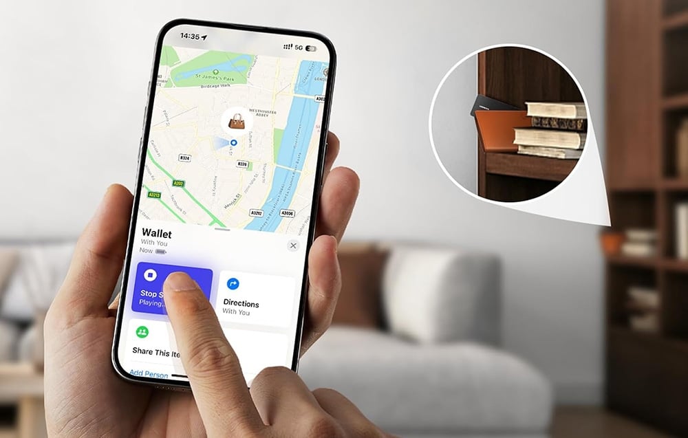 Funkcja Left-Behind Reminder informuje, jeśli lokalizator oddali się od telefonu. Otrzymasz automatyczne powiadomienie, gdy zostawisz portfel w kawiarni lub zgubisz go w podróży.