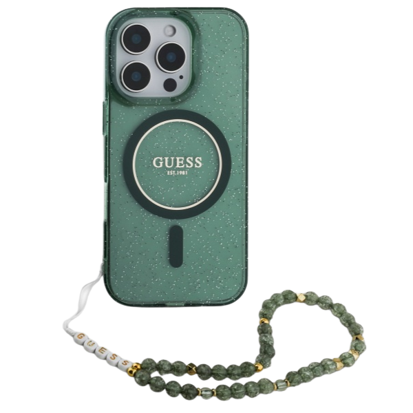 Guess IML Glitter With Pearl Strap MagSafe is an exclusive line of protective cases that combines exceptional functionality with a stylish, unique design. This collection has been designed for those who value not only the safety of their phone but also an elegant appearance. Each case from this series is a true expression of good taste, offering excellent craftsmanship and a distinctive aesthetic.
