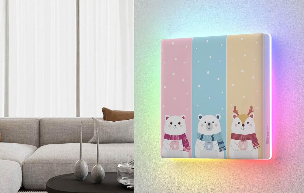 SONOFF Cartoon 3C is a stylish cover designed specifically for the SONOFF T5 3C touch wall switch. With it, you can personalize the device and adjust its appearance to your preferences! The installed overlay does not affect the comfort of use and allows you to conveniently utilize all the functions of the switch.