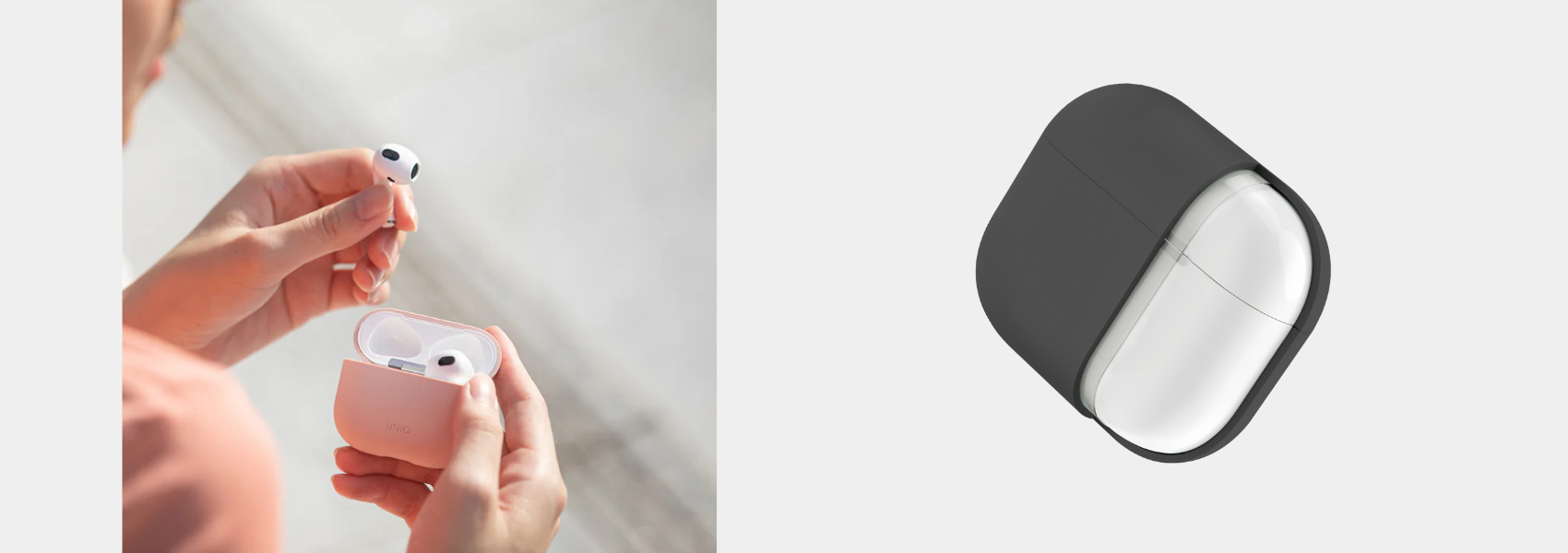 Lino is the perfect case for your AirPods, combining style and functionality at its best. With its hybrid Silicore™ construction featuring a durable polycarbonate layer and a flexible liquid silicone coating, it provides reliable protection against everyday drops. Its soft, silky-smooth surface not only looks elegant but also feels pleasant to the touch, ensuring comfort in daily use. Available in timeless colors, Lino will add character to your AirPods.